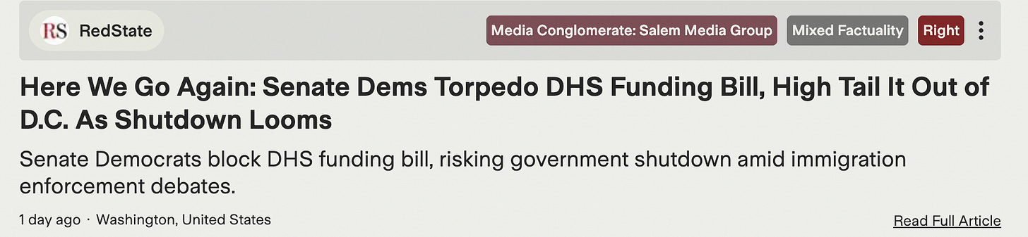 And of course right-wing outlets are talking about the DHS shutdown like the Democrats ran out of town: