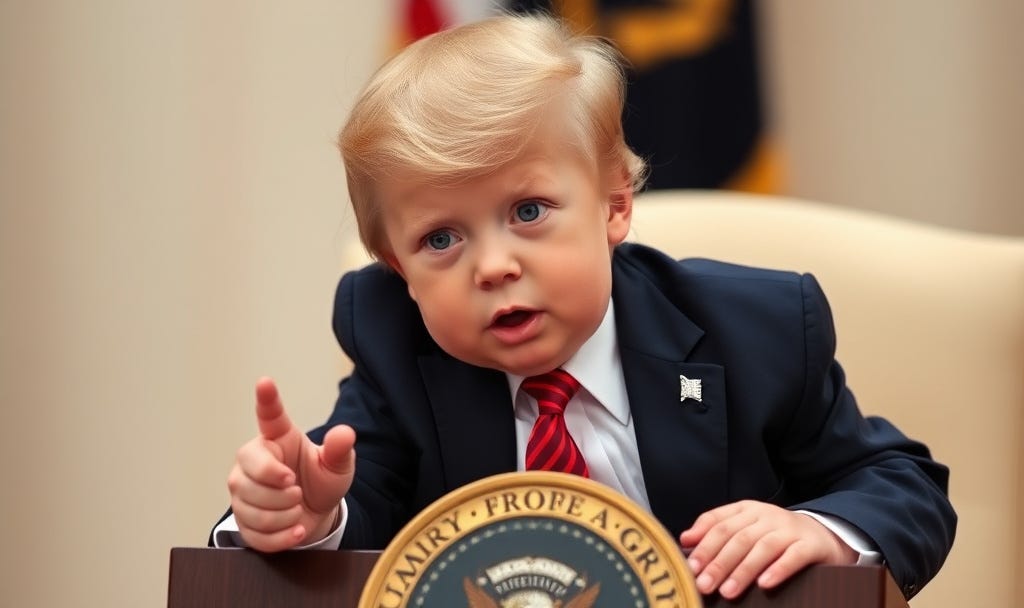 Twittler could not be happier about his trips, especially since they all know stroking his ego is all they need to get him to capitulate on anything. Say your country is going to invest in the USA but it never happens, give him a gold crown (I’m sure he thinks it is the original not a clone), and he’ll give you anything you want. Calling him a toddler though gives toddlers a bad rap.