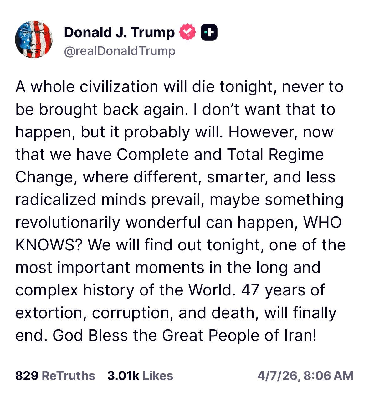 Because today, president, Donald Trump, openly threatened to “wipe out” an entire country—Iran—publicly, recklessly, in a way that raises immediate and serious questions about judgment, restraint, and capacity.